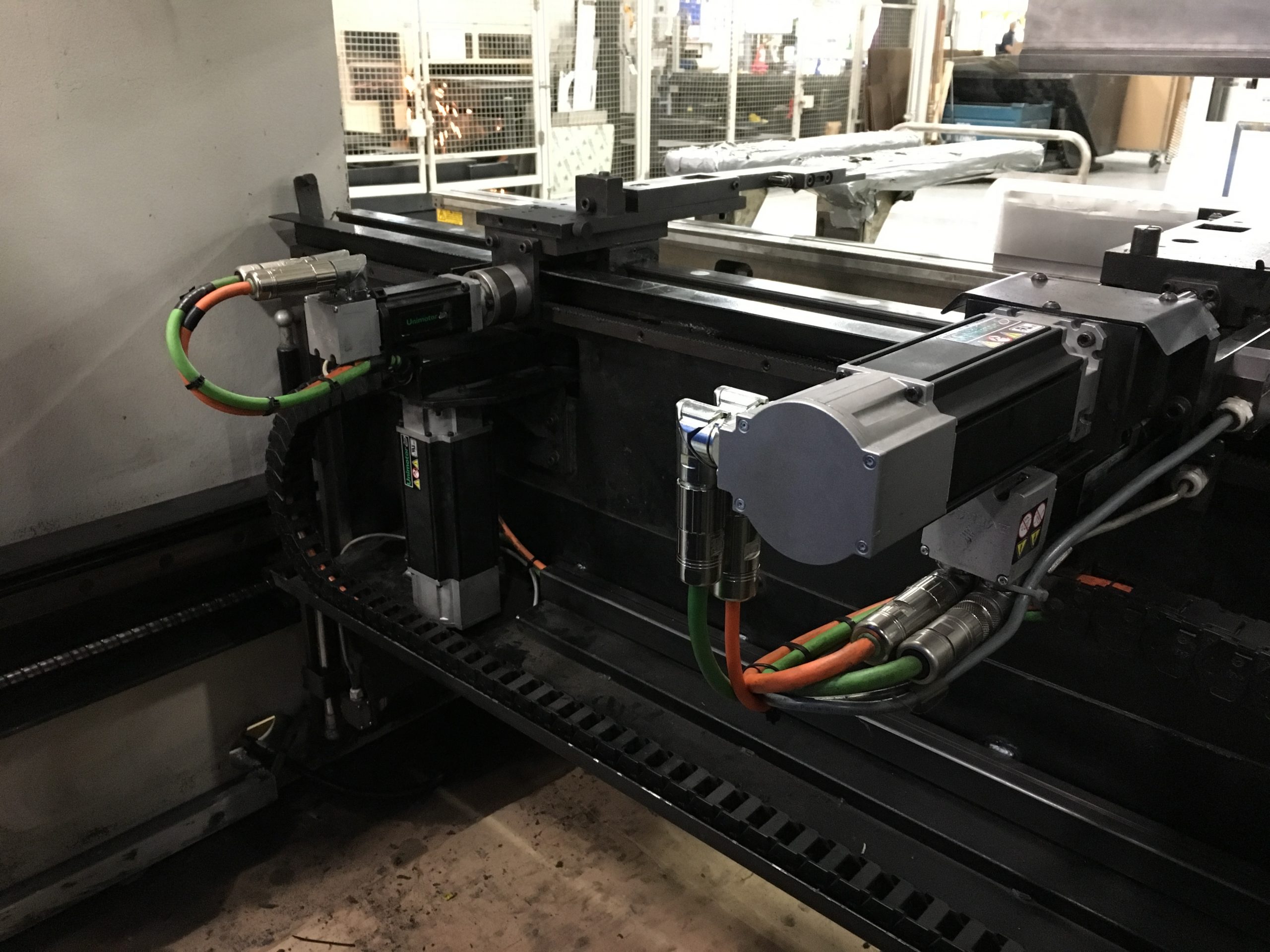 We modernized the controls with a new Cybelec ModEva Pac control system, new servo drives and motors for the three-axis back gauge. We also streamlined the machine by removing the three separate panels and consolidating the electrical into a single panel.
