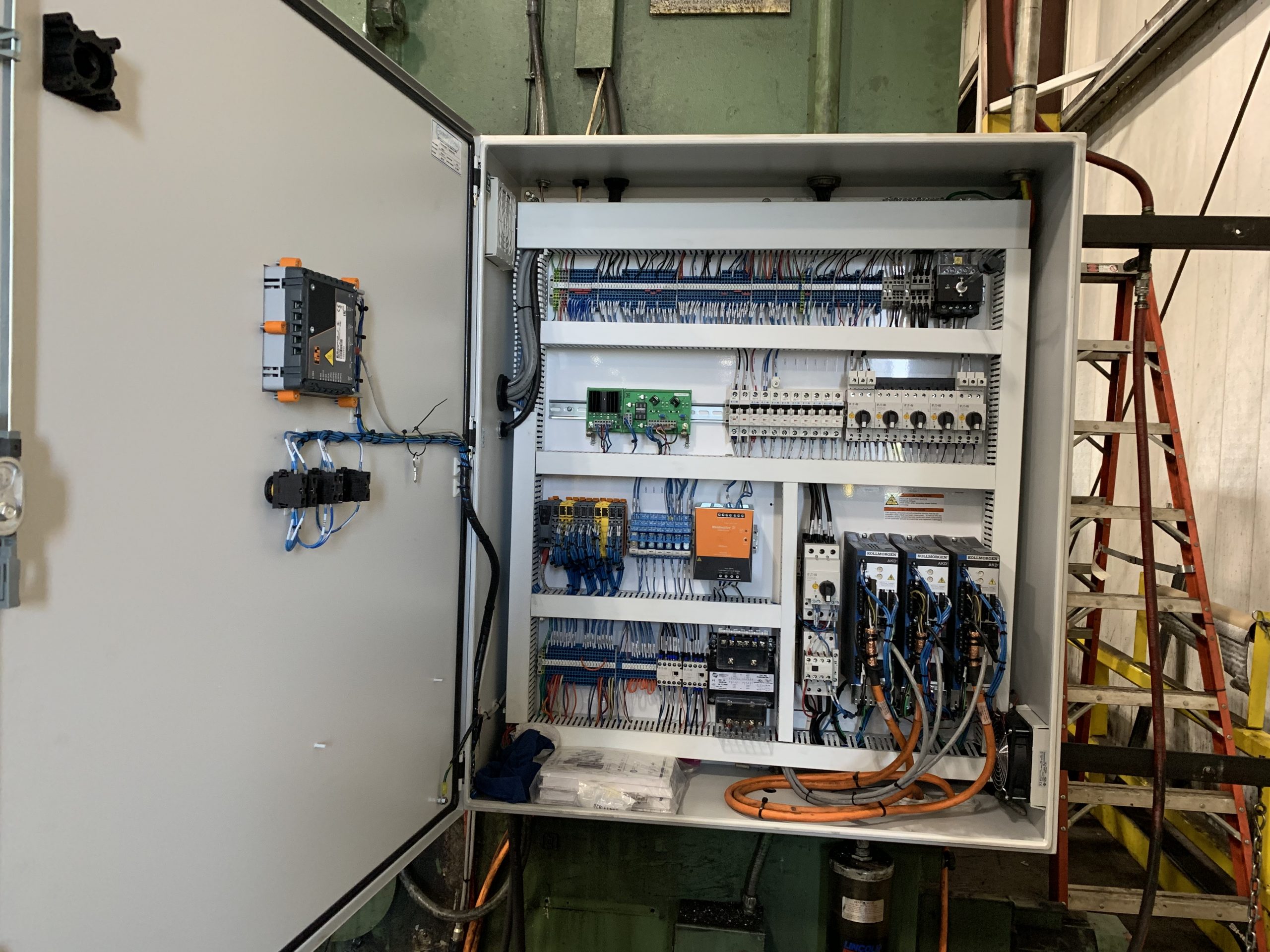 The client came to us to modernize their control panel. They also wanted to simplify fault finding and troubleshooting. The press brake was significantly modified since its original construction, and the modified control system and electrical panel were not well documented. This made fault finding and troubleshooting very problematic.